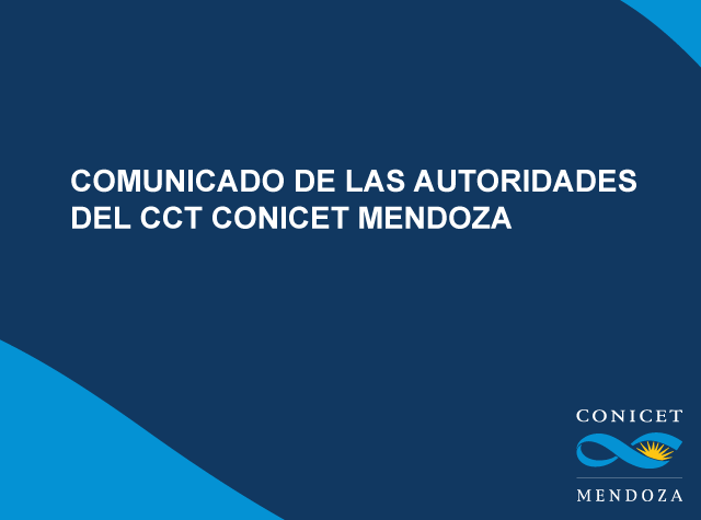 Dra. Elena María Abraham (Directora CCT-Mendoza), Dr. Fidel A. Roig (Director IANIGLA y Vice Director CCT-Mendoza), Dra. Beatriz Bragoni (Directora INCIHUSA), Dr. Rubén Carón (Director IMBECU), Dr. Sergio E. Roig (Director IADIZA), Dra. Andrea E. Pattini (Directora INAHE), Dra. María I. Colombo (Directora IHEM), Dra. María Fernanda Silva (Directora IBAM)