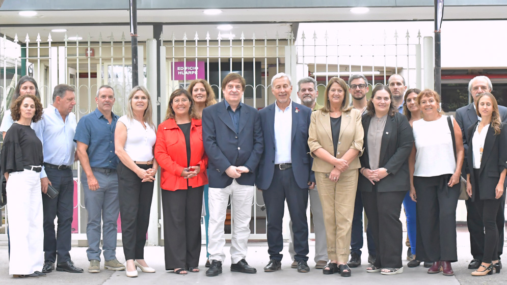 El presidente del CONICET, Daniel Salamone y el rector de la UMAZA, Daniel Miranda con autoridades, investigadores y referentes de vinculación tecnológica del CONICET y de la UMAZA. Gentileza UMAZA.