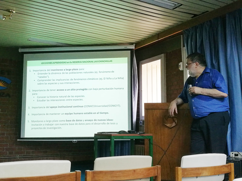 En esta oportunidad, el experimentado investigador disertó sobre: Estudios de largo plazo en ecología: experiencias en la Reserva Nacional las Chinchillas, Chile.