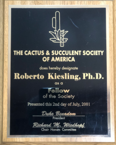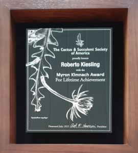 En un acto realizado en la ciudad de Colorado Spring, Estados Unidos, el Dr. Roberto Kiesling, investigador independiente del CONICET en el IADIZA, fue reconocido con el premio “Myron Kimnach”, que otorga la Sociedad Americana de Cactus y Suculentas (CSSA, por sus siglas en inglés).