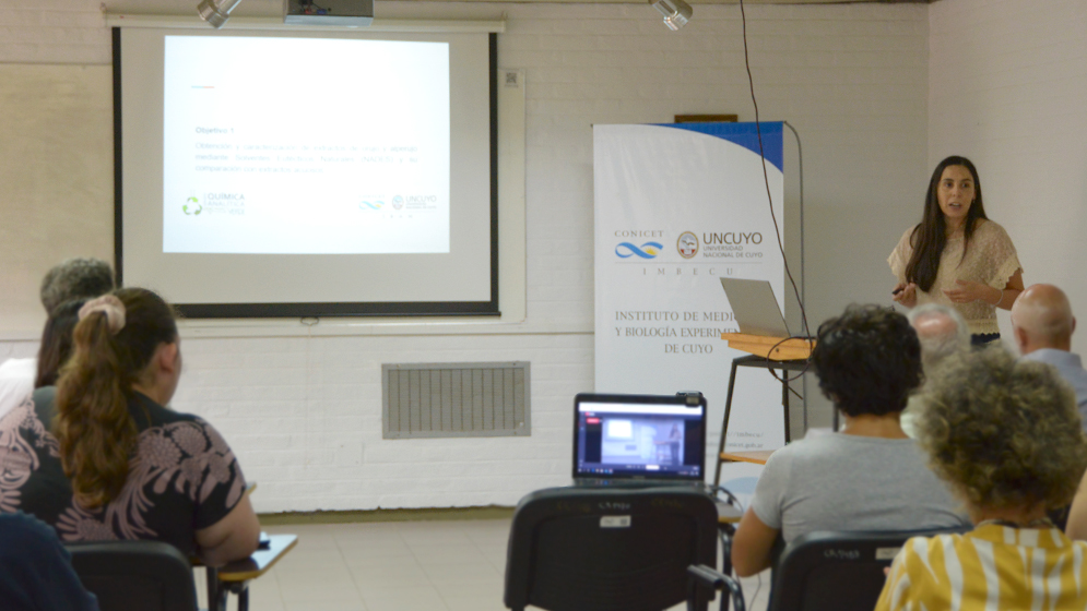 Investigadoras del CONICET presentaron, en la sala Ricardo P. Deis del Instituto de Medicina y Biología Experimental de Cuyo (IMBECU, CONICET-UNCUYO), los resultados del trabajo producto del convenio de investigación y desarrollo “Revalorización de subproductos vitivinícolas y olivícolas para la salud”. El estudio da cuenta de las propiedades antitumorales de los subproductos derivados del proceso de producción de vino y de aceite de oliva. En particular, el orujo (mezcla de escobajo, piel, pulpa y semillas de uva) y el alperujo (mezcla de agua de vegetación, pulpa y restos de carozo de aceituna). La investigación estuvo a cargo de un equipo compuesto por especialistas del IMBECU y del Instituto de Biología Agrícola de Mendoza (IBAM, CONICET-UNCUYO).