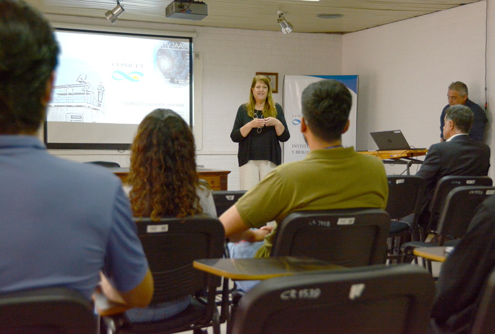 La apertura del encuentro fue encabezada por el director del IMBECU, Walter Manucha, y la encargada de la primera conferencia, denominada “Una meta, un lugar, una vida”, fue la directora del CONICET Mendoza, Andrea Pattini, quien realizó una presentación sobre el CONICET y además, señaló: “Es muy relevante que distintas disciplinas, de diferentes ámbitos, estén compartiendo un espacio acá que es la casa del CONICET en el territorio”, y agregó: “Estamos muy contentos de recibir personas muy jóvenes de distintas provincias que van a ser parte de esta jornada”.